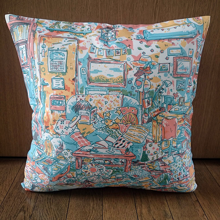 そしてこちらのクッションなのですが、6/1~8まで原宿のHappyPrinters様店頭で展示されます、お近くの方ぜひどうぞ~!