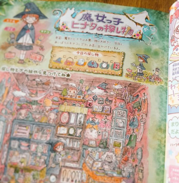 キャラぱふぇ1-2月号p150の、「魔女っ子ヒナタの探し物」コーナーの絵を担当させていただきました!初めてこういう紙媒体の仕事しました!